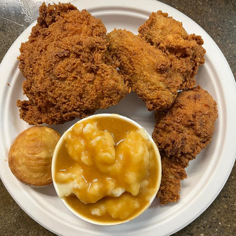 All dinner items include a salad choice, vegetables, starch, rolls with butter, and a fountain beverage.
